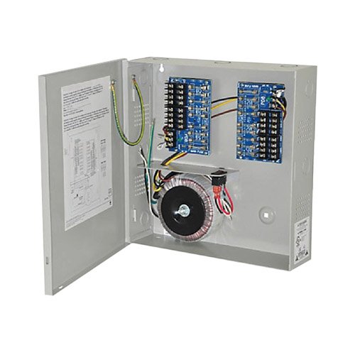 FUENTE DE ALIMENTACIÓN DE 16 SALIDAS, VOLTAJE DUAL 24/28 VCA, CORRIENTE SUMINISTRADA DE 12.5 O 10 AMPERES, VOLTAJE DE ENTRADA 115 VCA. SALIDAS PROTEGIDAS CON FUSIBLES, INCLUYE GABINETE DE ACERO DE ALTA RESISTENCIA, FÁCIL DE MONTAR EN PARED, INCORPORA LED DE VOLTAJE